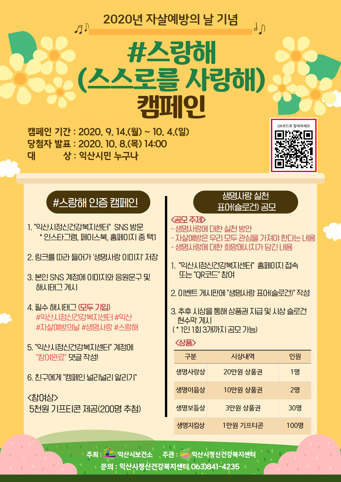 자살예방의 날 "#스랑해(스스로를 사랑해) 캠페인(익산시정신건강복지센터)