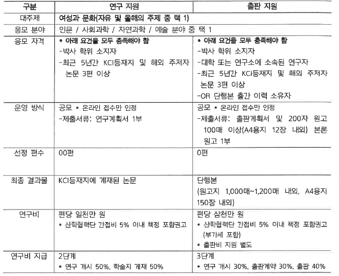 붙임 여성과 문화 정기 학술 공모 요강 1부. 끝.